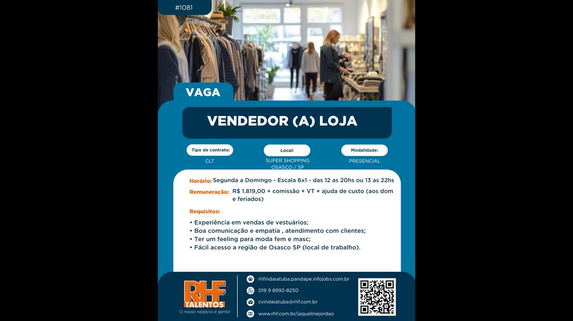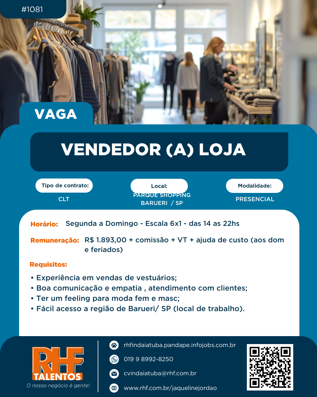 #1081 - Vendedor(a) - Barueri - loja shopping
