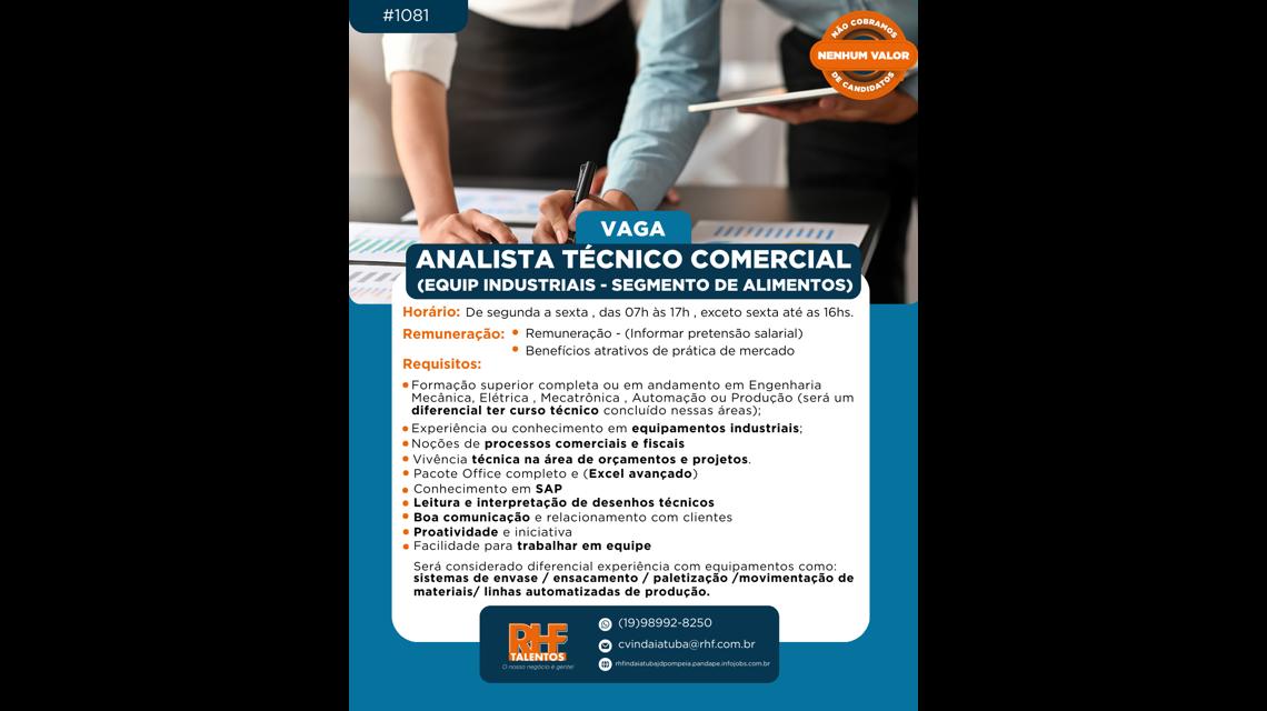 #1081 - VAGA | ANALISTA TÉCNICO COMERCIAL